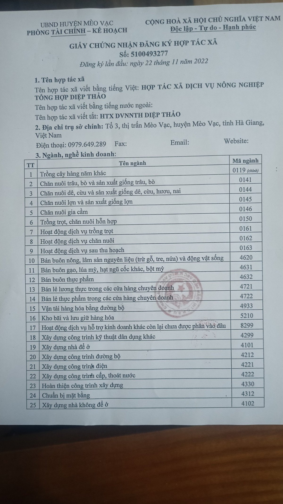 Hợp tác xã Dịch vụ Nông nông nghiệp tổng hợp Diệp Thảo