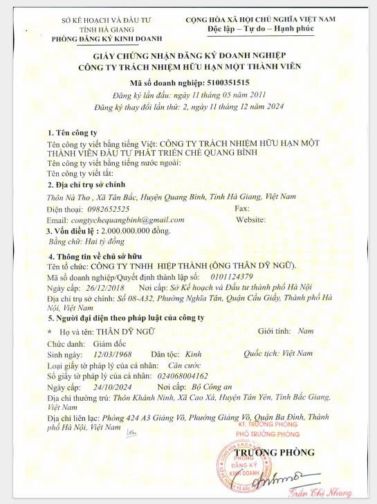 Địa chỉ: thôn Nà Tho, xã Tân Bắc, huyện Quang Bình, tỉnh Hà Giang