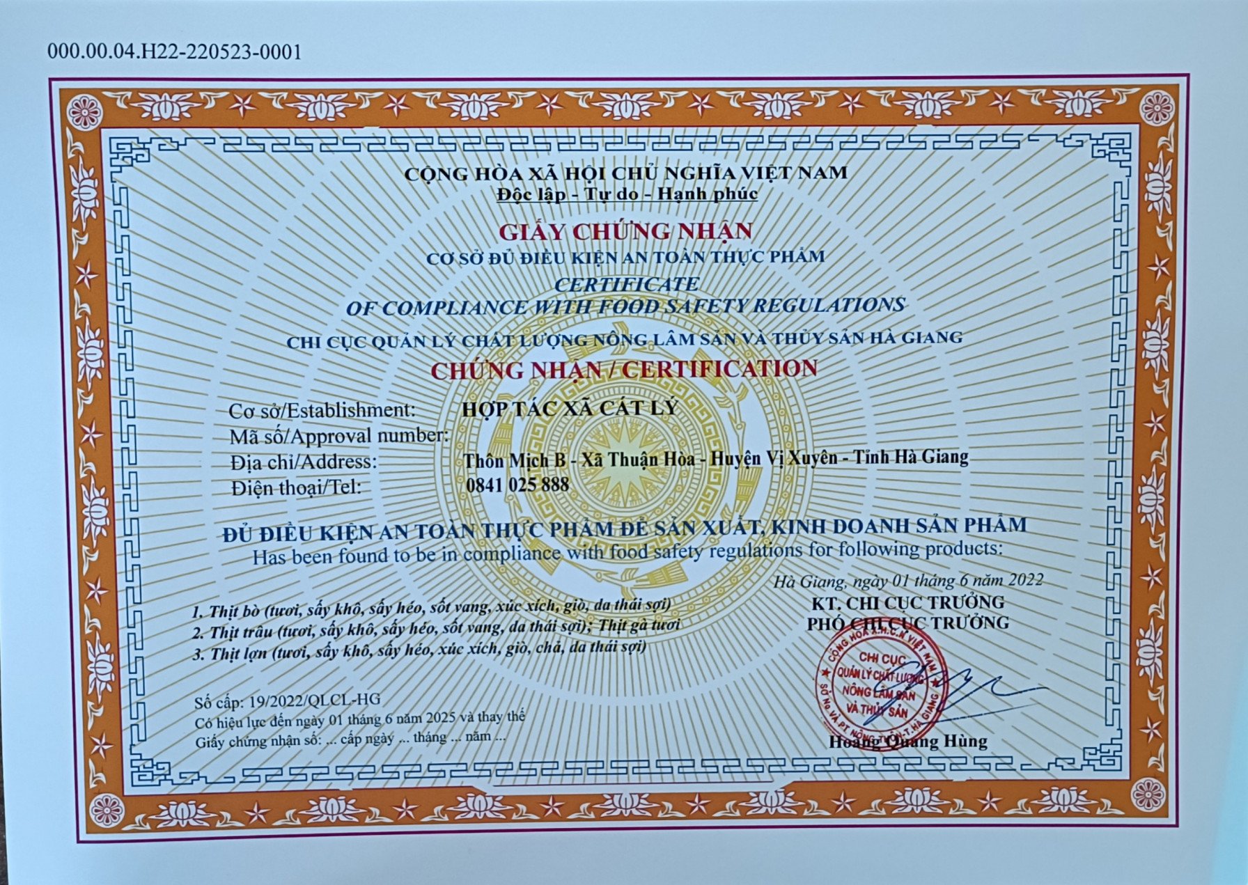 Xuất xứ: Thôn Mịch B xã Thuận Hòa huyện Vị Xuyên tỉnh Hà Giang