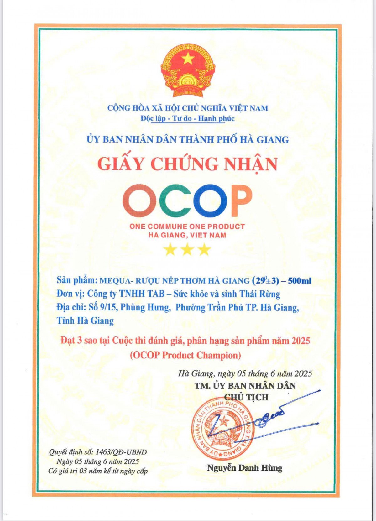 Xuất xứ: Hà Giang, Việt Nam