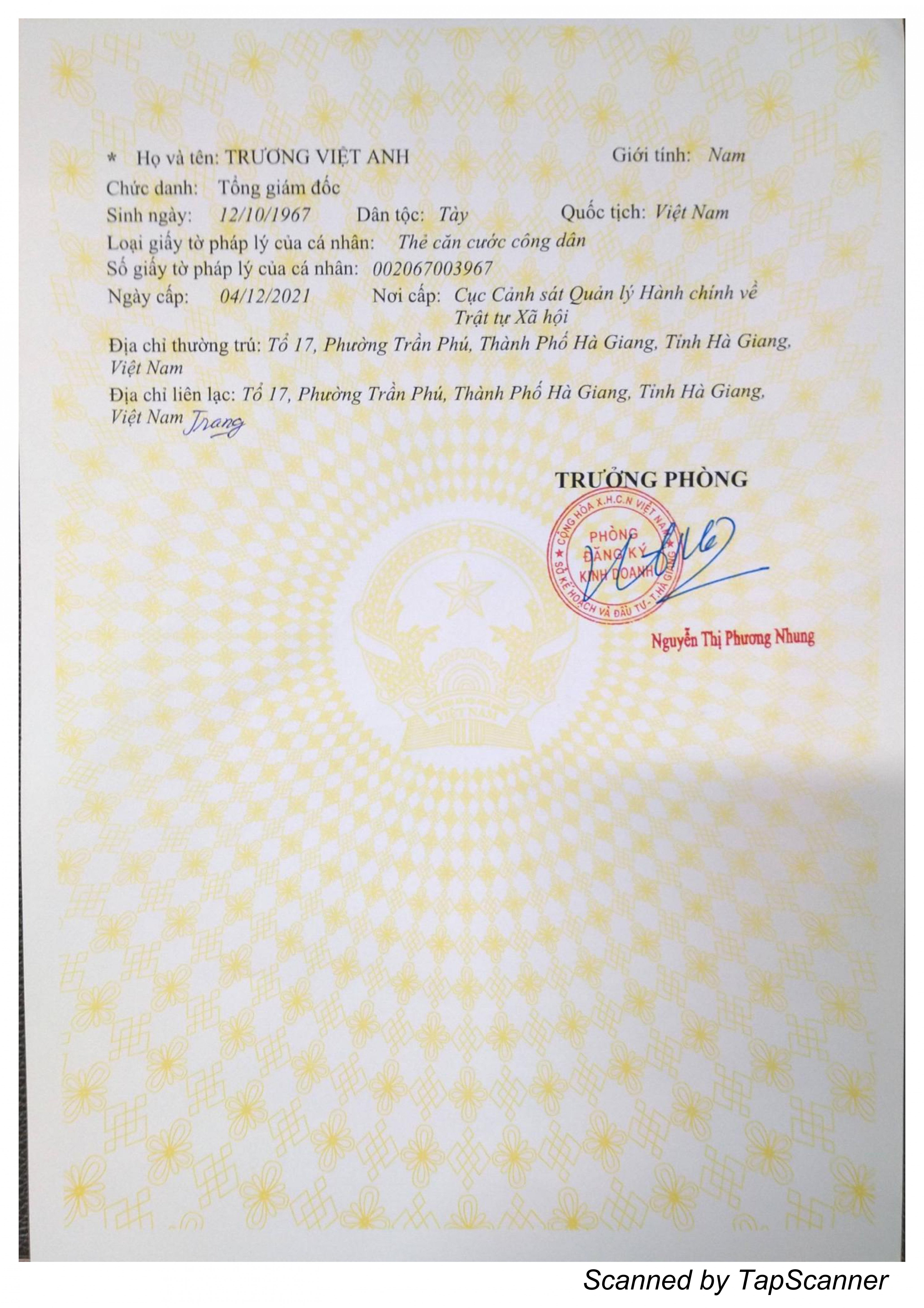 : 9/15, Phùng Hưng, tổ 17, phường Trần Phú, thành phố Hà Giang, tỉnh Hà Giang