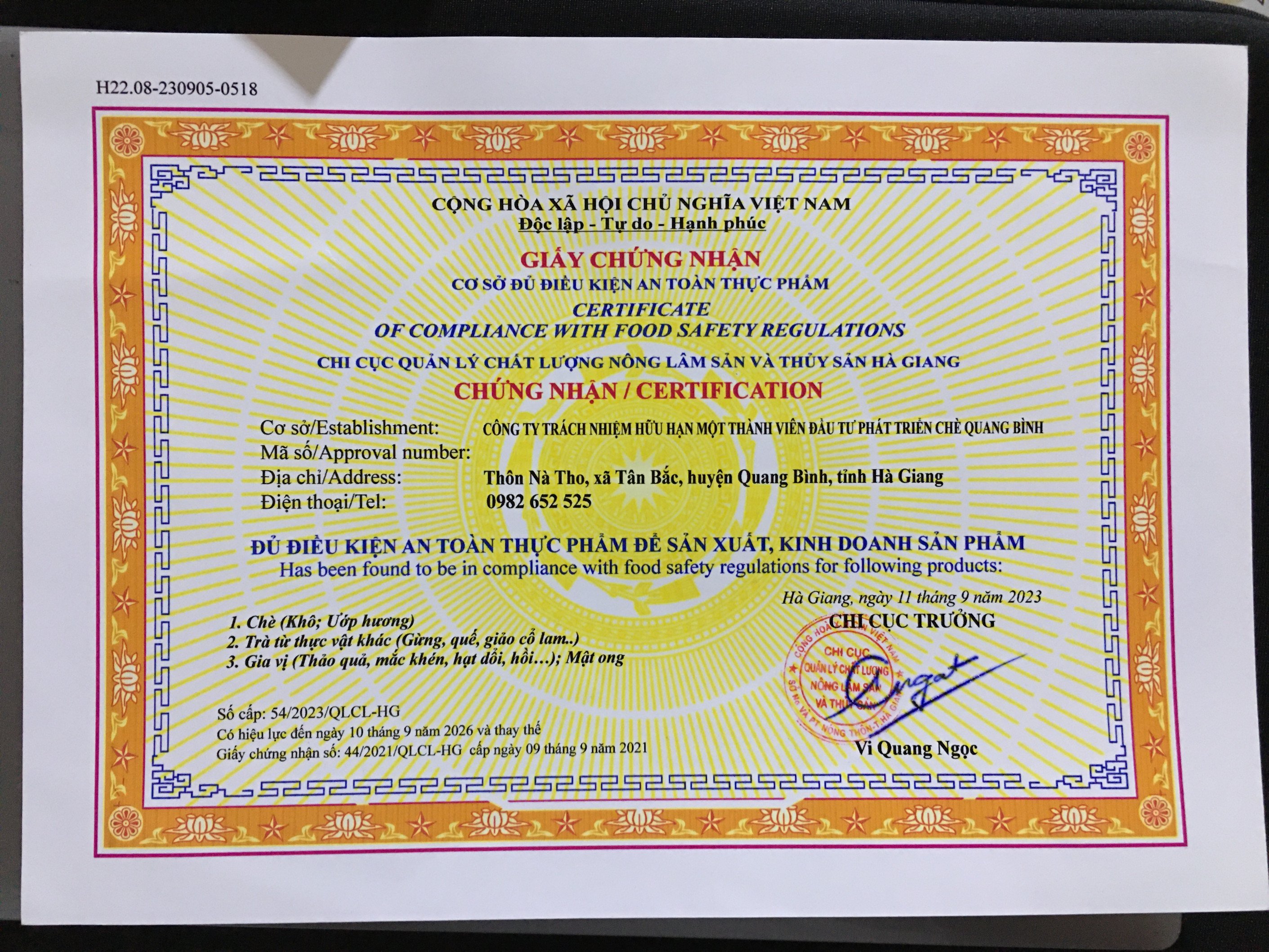 Công ty TNHH MTV ĐTPT CHÈ QUANG BÌNH