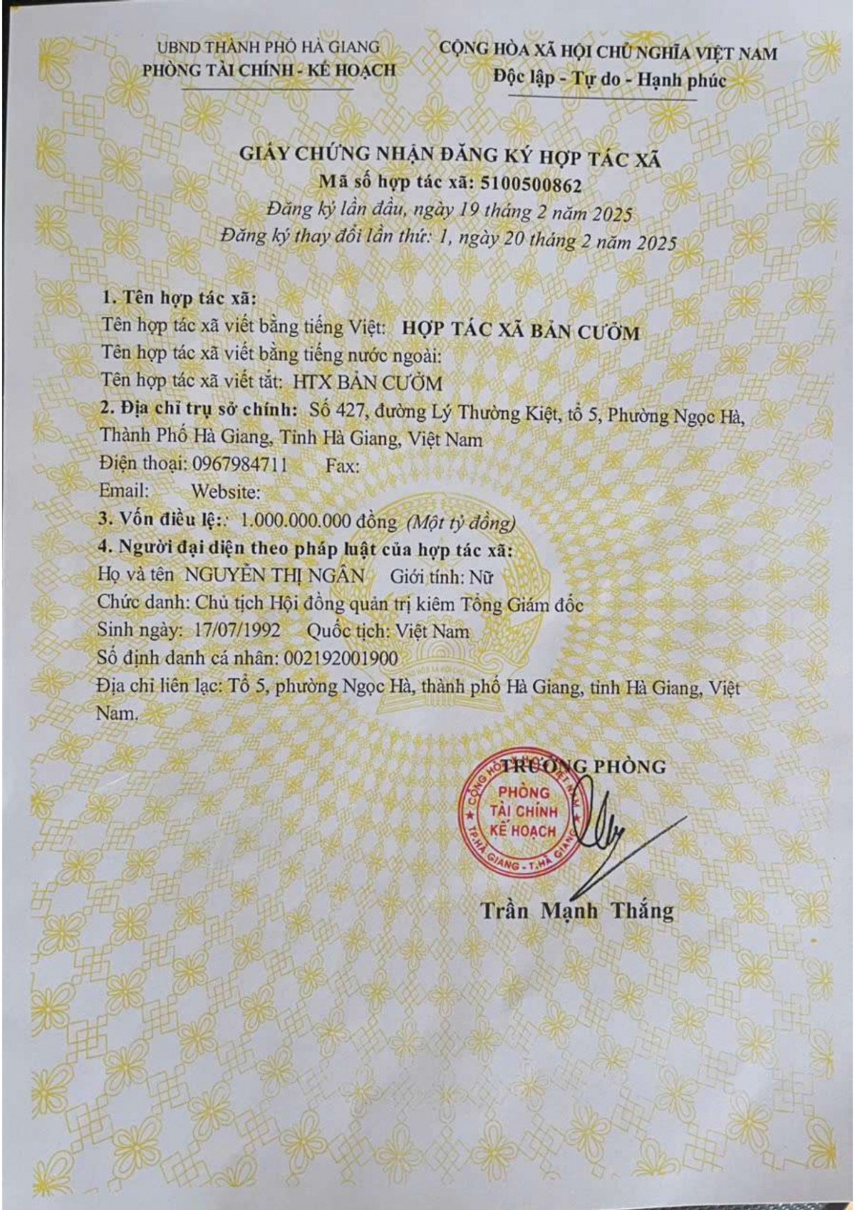 Thịt treo gác bếp Bản Cưởm là đặc sản truyền thống của đồng bào dân tộc vùng cao, đặc biệt là người Mông. Thịt sau khi được tẩm ướp với muối, mắc khén, hạt dổi và ớt sẽ được treo lên gác bếp để hun khói trong nhiều tháng. Nhờ khói bếp và không khí vùng núi, thịt khô lại, đậm đà hương vị, có thể bảo quản lâu dài. Khi ăn, chỉ cần nướng, hấp hoặc rim lại là có món ăn thơm ngon, độc đáo, đậm đà bản sắc Hà Giang.